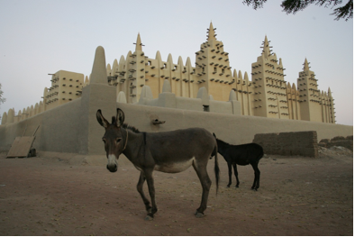 Djenné, beautiful, is a city of mud, all built in bench - clay mixed with water and rice straw and strengthened to make it a bit 'more resistant to rain, with gum arabic, shea butter and baobab fruit powder. Here is the largest mud mosque in the world, recently restored with funding from the Aga Khan. Unforgettable sunrise.